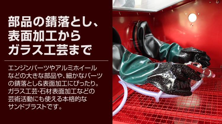 サンドブラストで錆びた部品や奥まった形状で手が入らない部分等の錆落とし、表面加工に最適の1台!