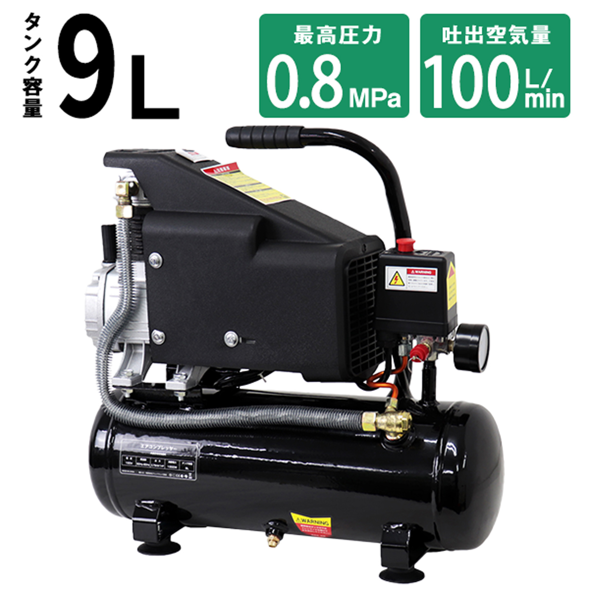 エアーコンプレッサー 9L 最高圧力0.8Mpa 100V オイル式 過圧力自動停止機能 エアーツール WEIMALL