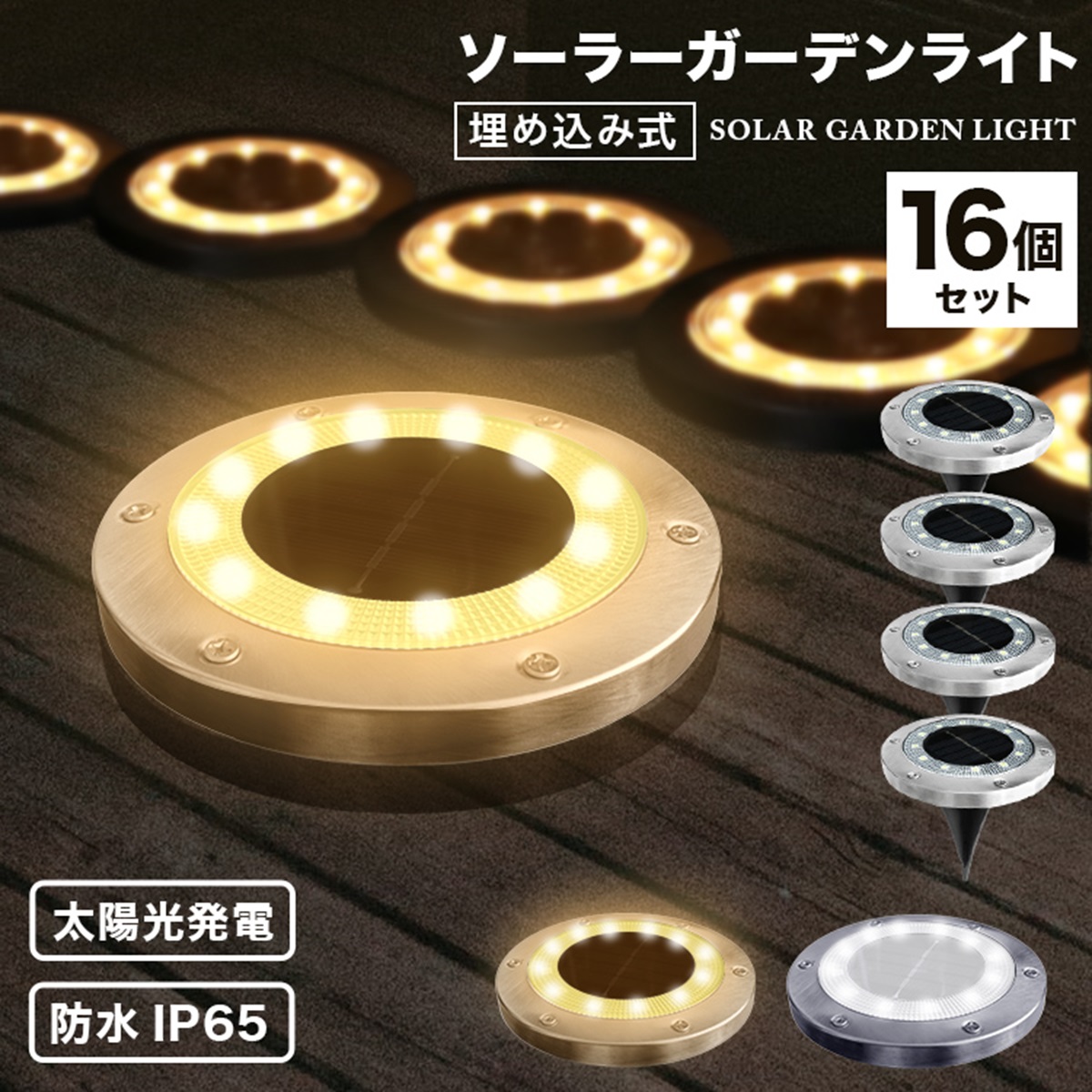 LEDソーラーライト 防水 ガーデンライト 屋外 埋込 置き型 2WAY 16個セット 誘導灯 太陽光充電 昼光色 電球色 おしゃれ 外構 エントランス 庭 芝生 WEIMALL