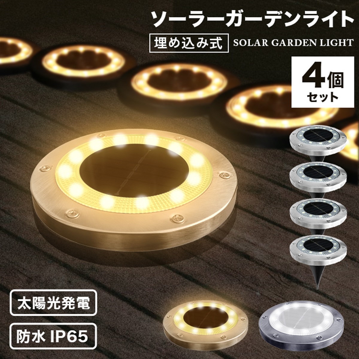 LEDソーラーライト 防水 ガーデンライト 屋外 埋込 置き型 4個セット 誘導灯 太陽光充電 おしゃれ ガーデンソーラーライト 外構 エントランス 庭 芝生 WEIMALL