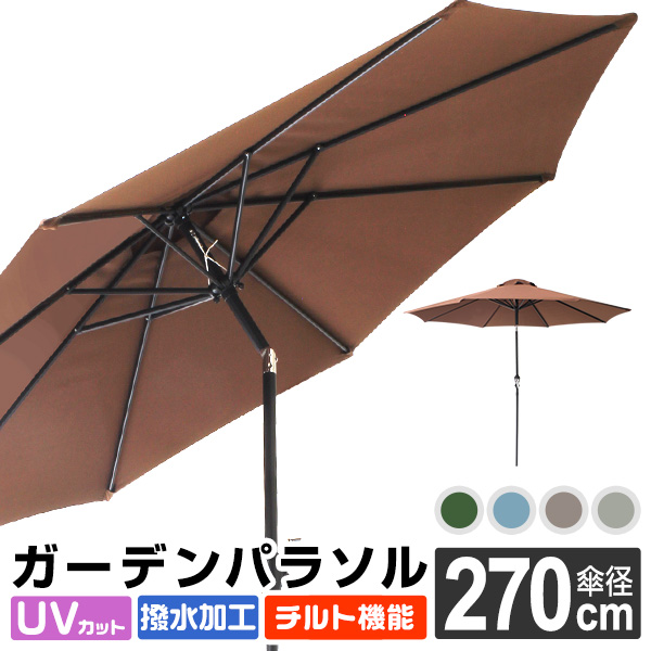 ガーデンパラソル 270cm ベース セット 本体 日よけ UVカット 撥水加工 角度調整可能 ビーチパラソル 傘 キャンプ 日傘 折りたたみ 庭 BBQ バーベキュー WEIMALL