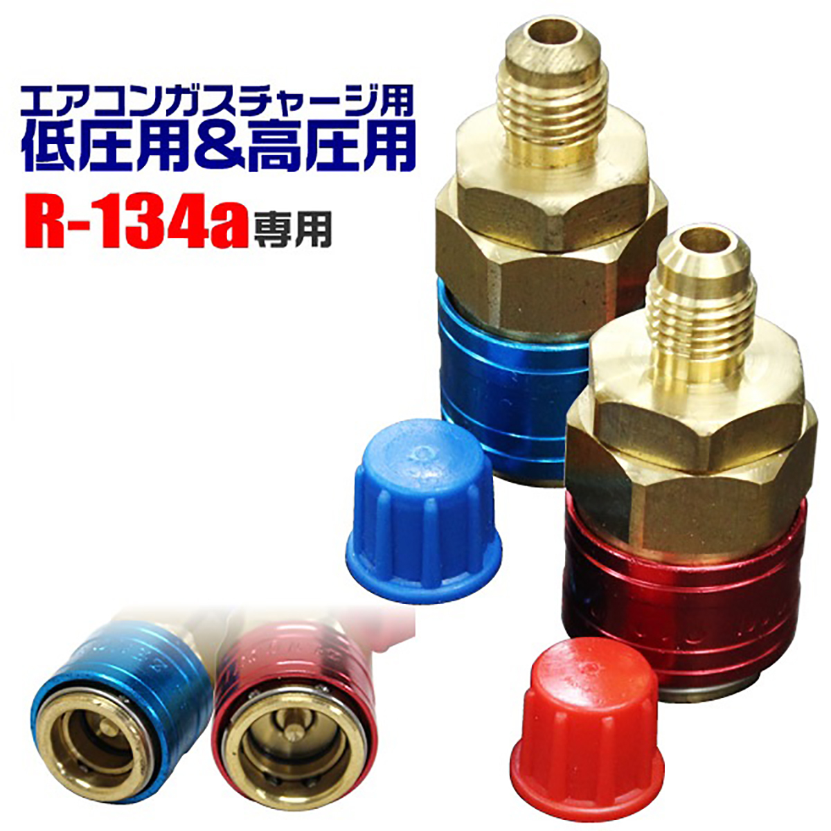 エアコンのガスチャージ等で使用する、R134a用の低圧&高圧クイックカプラーセットです。