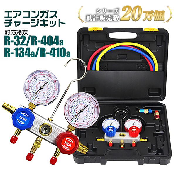 エアコンガスチャージ マニホールドゲージ R32 R404a R134a R410a 対応冷媒 カー・ルームエアコン 缶切 クイックカプラー付 WEIMALL