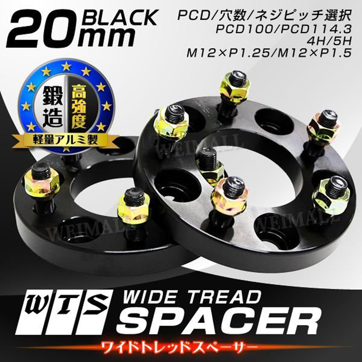 Durax ワイドトレッドスペーサー ワイトレ スペーサー ホイールスペーサー黒 20mm ナット付 2枚入 PCD 穴 ピッチ選択 国産 車 対応 WEIMALL