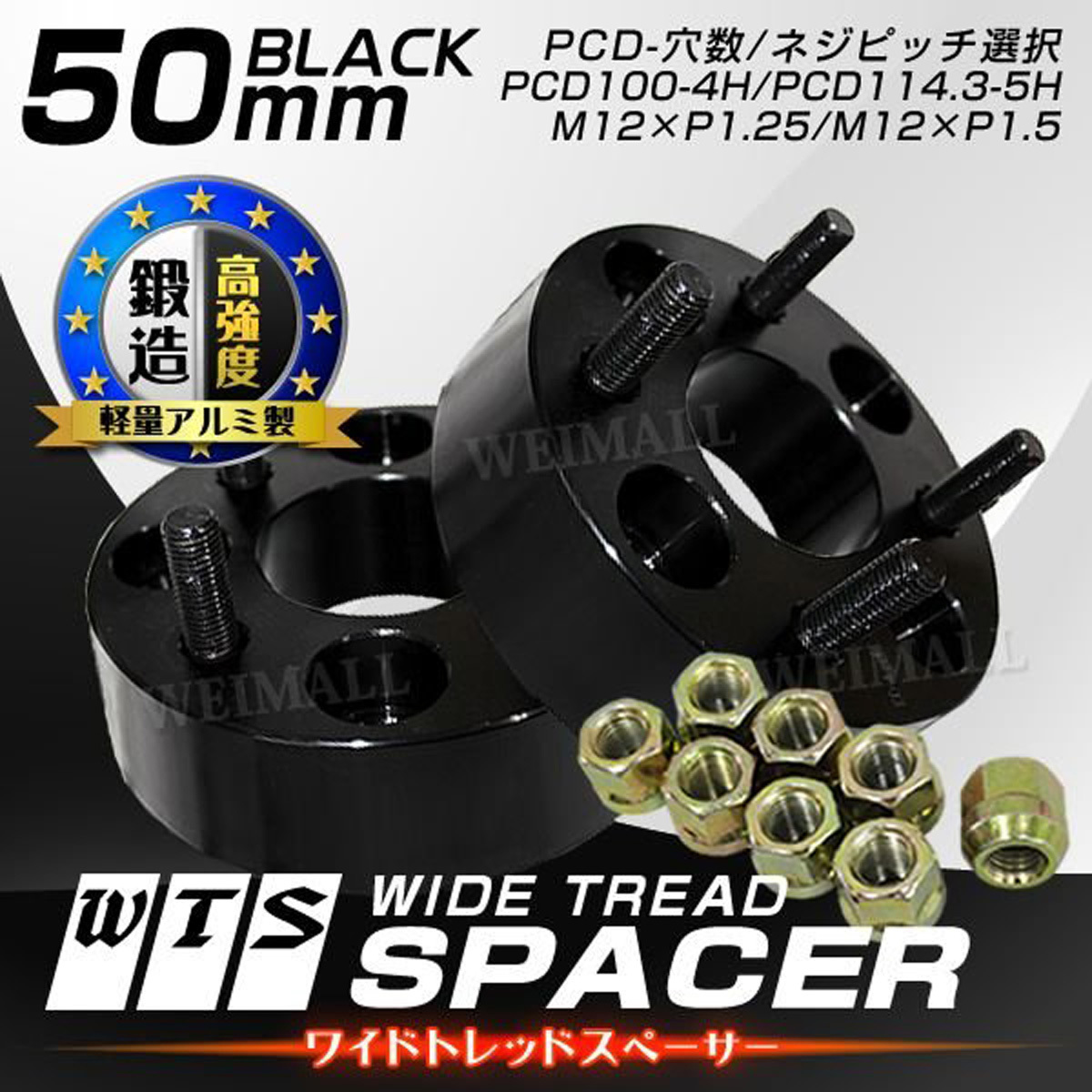 Durax ワイドトレッドスペーサー ワイトレ スペーサー ホイールスペーサー黒 50mm ナット付 2枚入 PCD 穴 ピッチ選択 国産 車 対応 WEIMALL