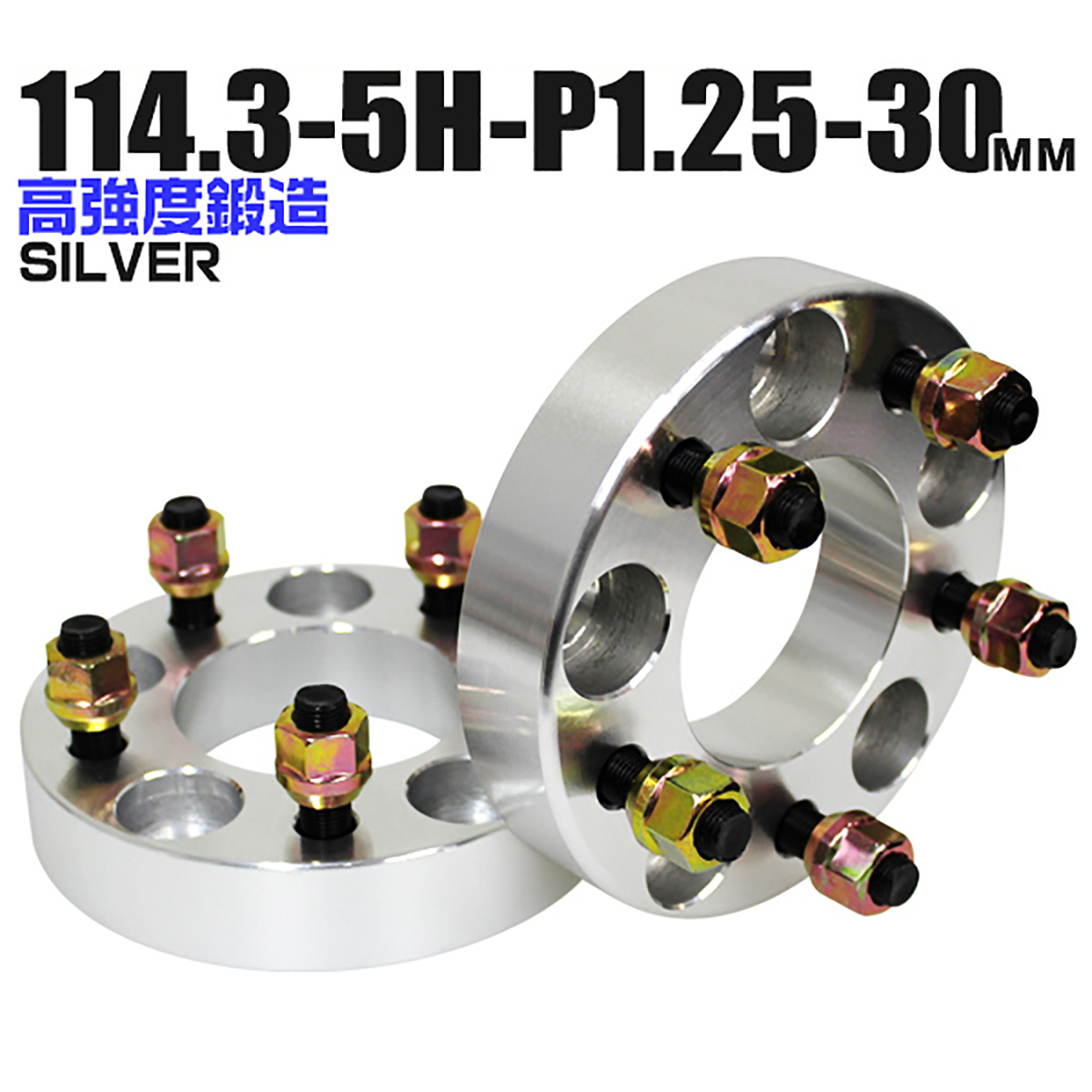 Durax ワイドトレッドスペーサー ワイトレ ホイールスペーサー30mm シルバー 銀 114.3-5H-P1.25 5穴 (日産 スズキ スバル) 2枚セット
