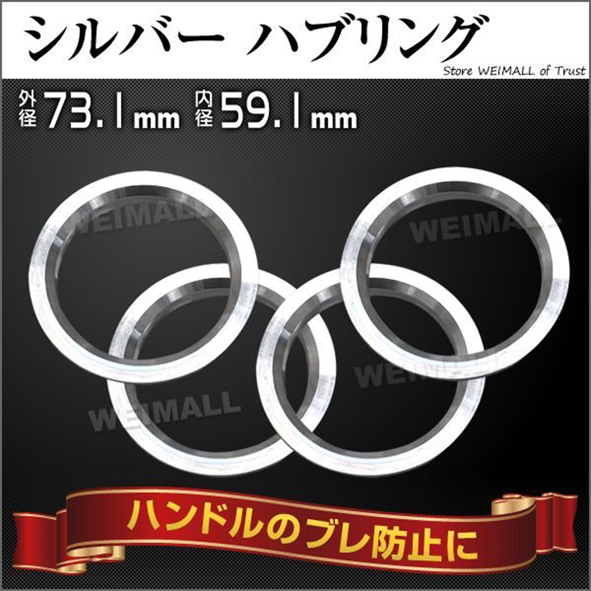 Durax ハブリング スペーサー アルミ製 ツバ付 73.1-59.1mm 4枚セット 銀 シルバー  WEIMALL
