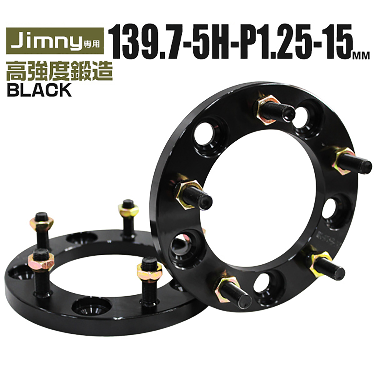 Durax ジムニー ワイドトレッドスペーサー ワイトレ スペーサー ホイールスペーサー15mm 黒 ブラック 139.7-5H-1.25 5穴 スズキ オススメ 2枚セット