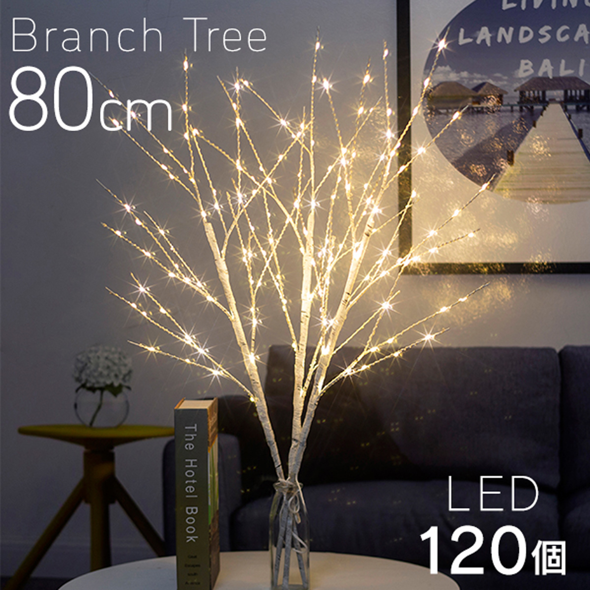 クリスマスツリー 80cm 卓上 北欧 ブランチツリー LED 電池式 枝ツリー 白樺ツリー イルミネーションツリー オーナメント 自動点灯 おしゃれ