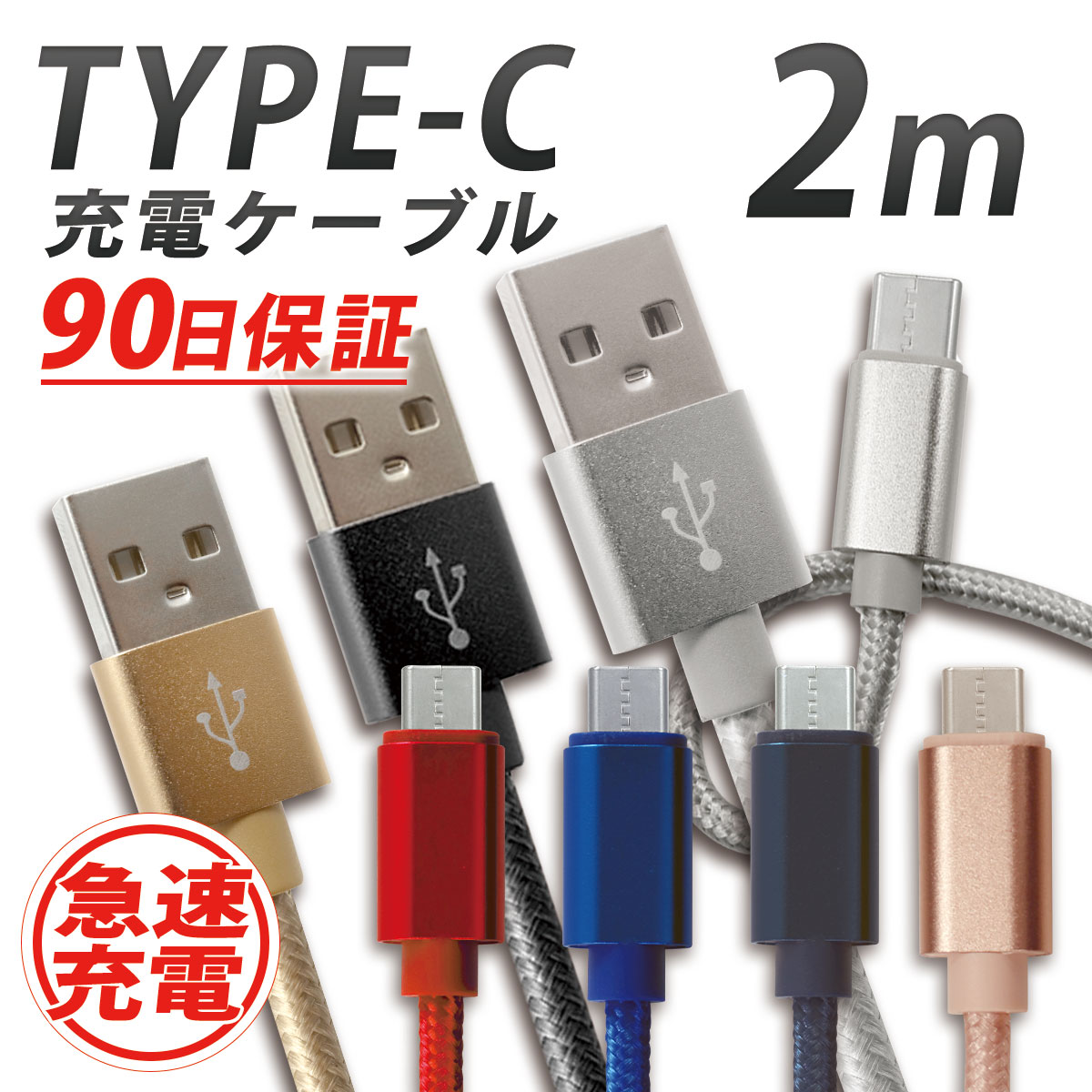 タイプC ケーブル 充電器 USBケーブル 充電ケーブル データ通信 イヤホン 2m 急速充電 2.1A 90日保証 WEIMALL