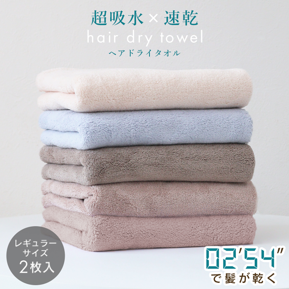ヘアタオル 吸水タオル ヘアドライタオル ミニバスタオル ドライヤー短縮 タオルキャップ ターバン 吸水速乾 2枚セット