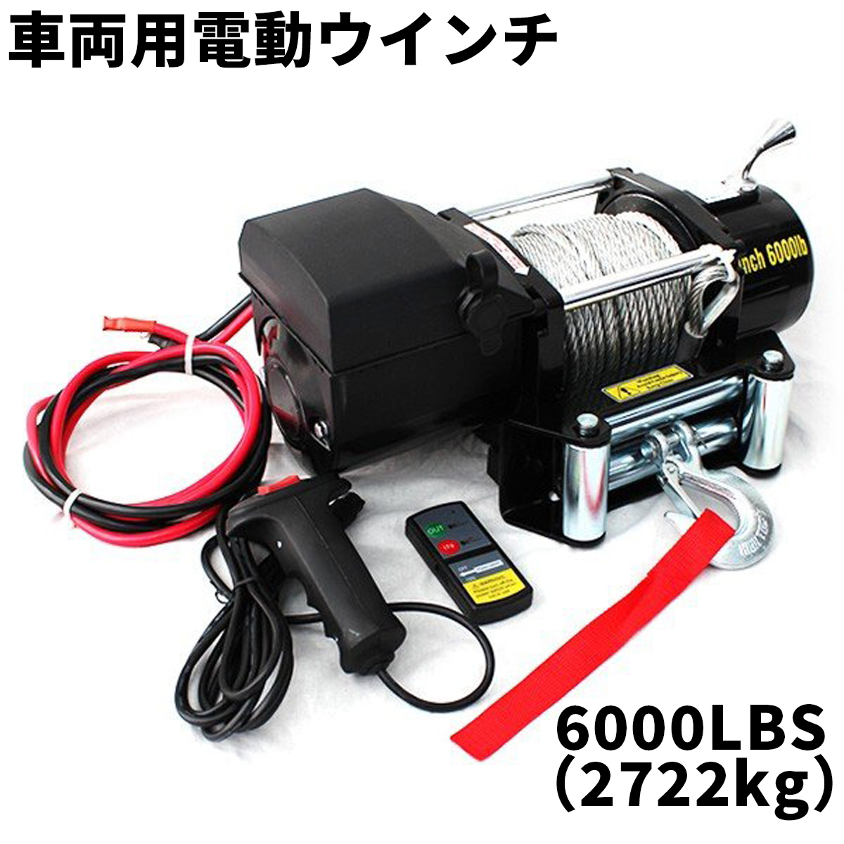 電動ウインチ 12v ウィンチ リモコン 防水 6000LBS 2722kg ワイヤー 車両用 車 有線コントローラー チェーンブロック