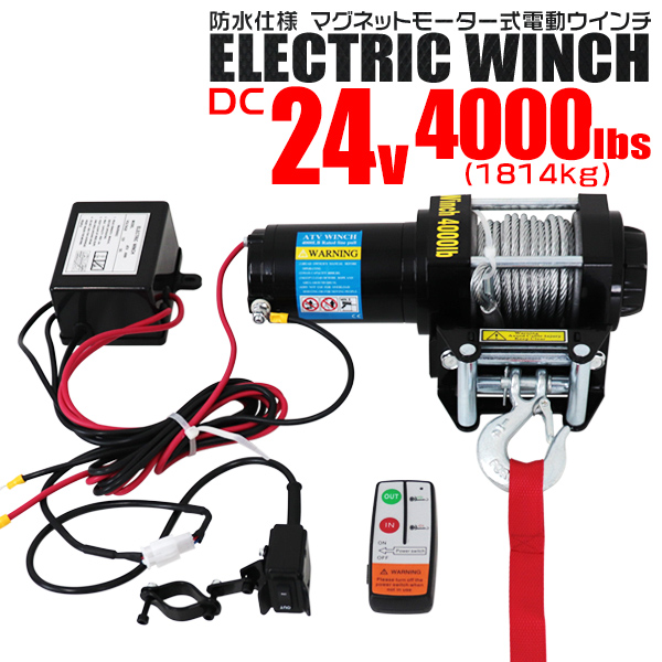 電動ウインチ 24v 4000LBS 強力マグネット式モーター 有線コントローラー & 無線リモコン付 クラッチ操作 約1814kg DC12V ワイヤータイプ チェーンブロック