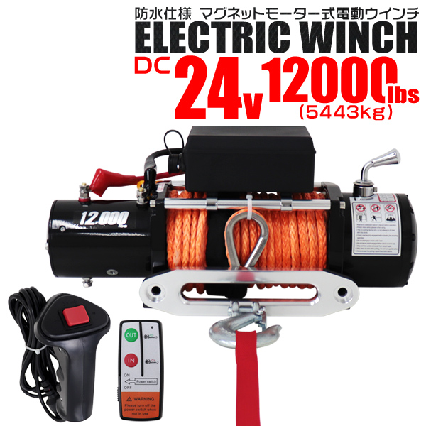 電動ウインチ 24v 12000LBS ロープタイプ 有線 無線リモコン ウインチ 5443kg 電動ホイスト DC24V 防水仕様 チェーンブロック