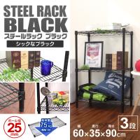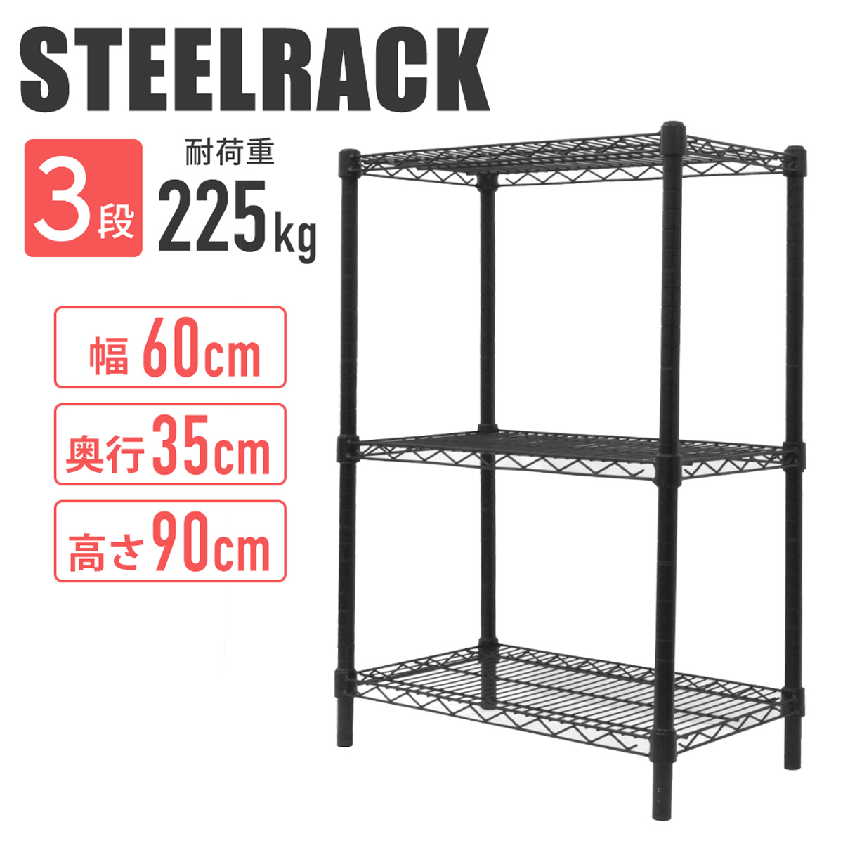 スチールラック 幅60cm メタルラック 3段 耐荷重225kg メタル製 ラック ブラック シェルフ 収納ラック 収納棚 高さ90cm 奥行35cm