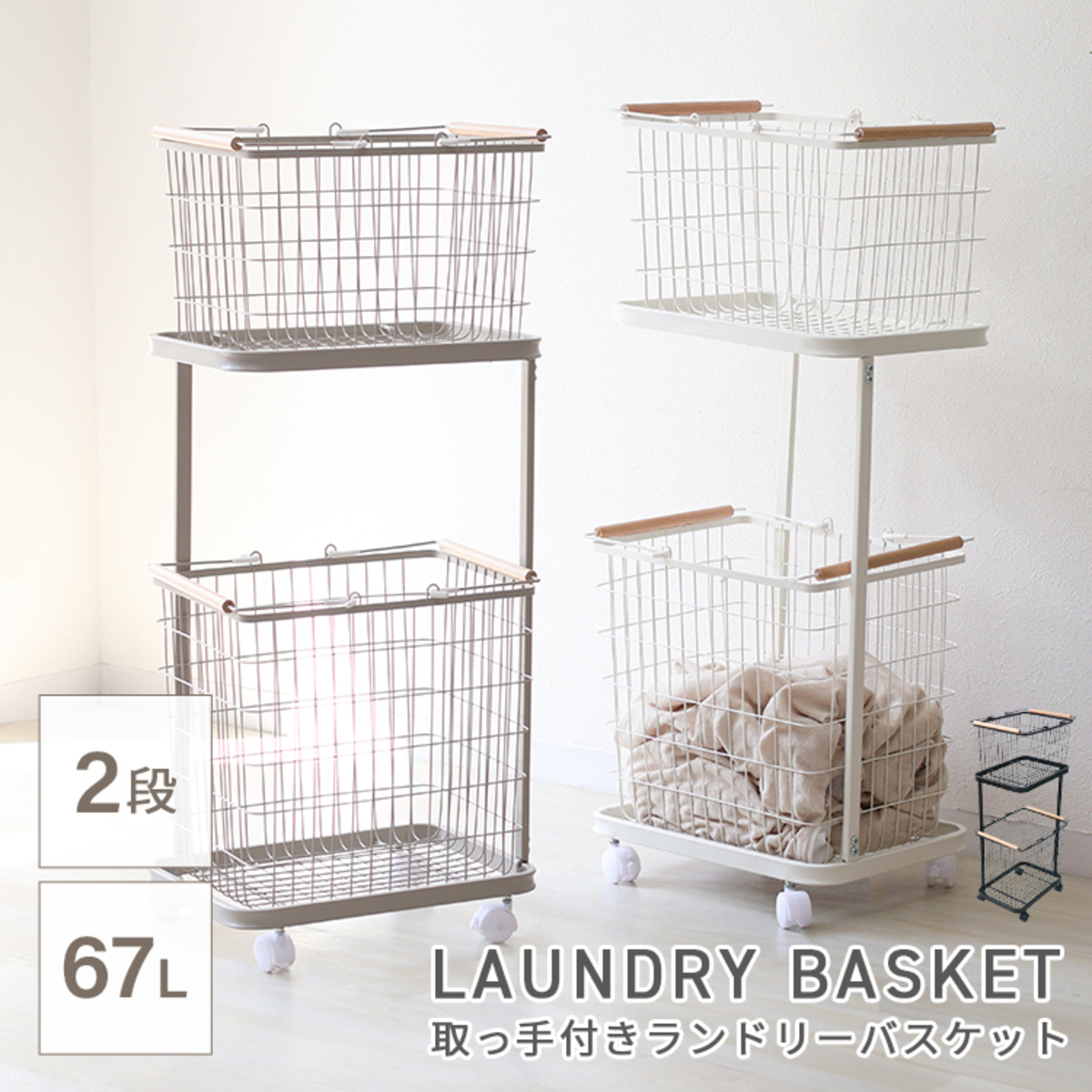 縦置き2段タイプ大容量「ランドリーバスケット」です。