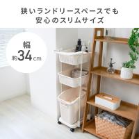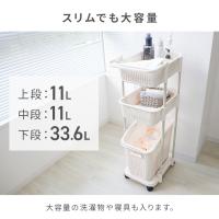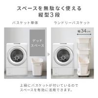 上段の浅バスケットにはバス用品、洗濯機まわりの小物が収納できます。