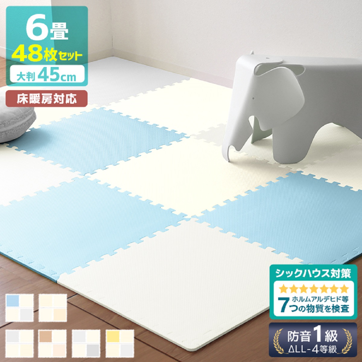 ジョイントマット 45cm 48枚セット 3色セット 6畳 床暖房対応 ベビー マット 防音 騒音 吸収 厚さ1cm クッションマット プレイマット 1級防音