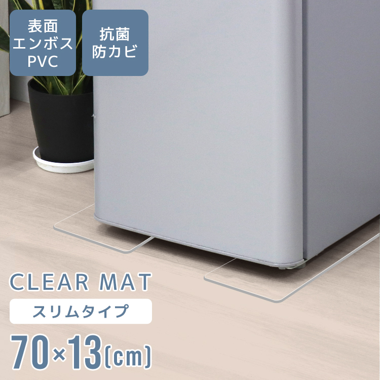 冷蔵庫マット クリアマット 冷蔵庫用 70×13cm 2枚 厚さ2mm PVC スリム 透明 傷防止マット 下敷き 床保護 カット可能 キズ防止 凹み防止 フローリング