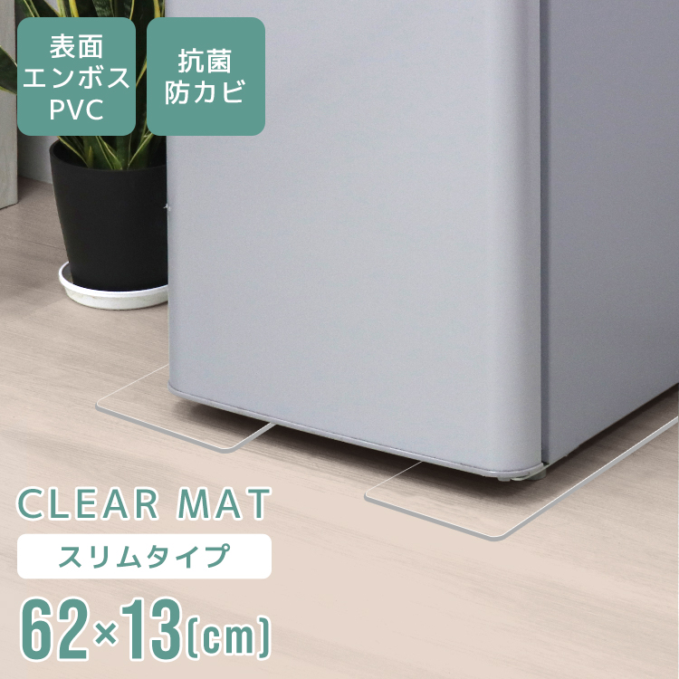 冷蔵庫マット クリアマット 冷蔵庫用 62×13cm 2枚 厚さ2mm PVC スリム 透明 傷防止マット 下敷き 床保護 カット可能 キズ防止 凹み防止 フローリング