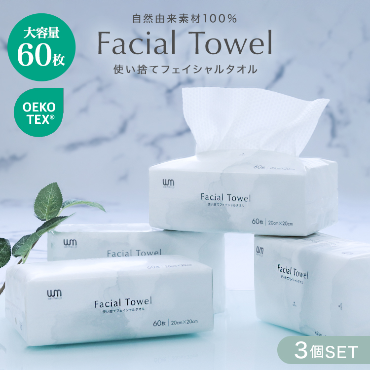 クレンジングタオル フェイシャルタオル フェイスタオル 使い捨て 60枚 3個セット 洗顔タオル 化粧 メイク落とし 敏感肌 ペーパータオル 手拭き