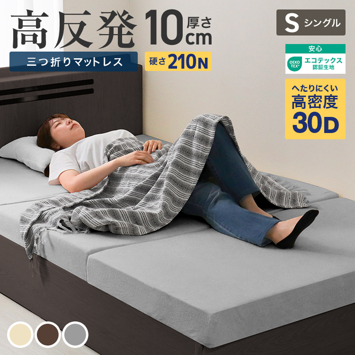 高反発マットレス シングル 厚み10cm 三つ折り 折りたたみマットレス 高反発ウレタン 硬さ 210N 新生活 ベッド WEIMALL