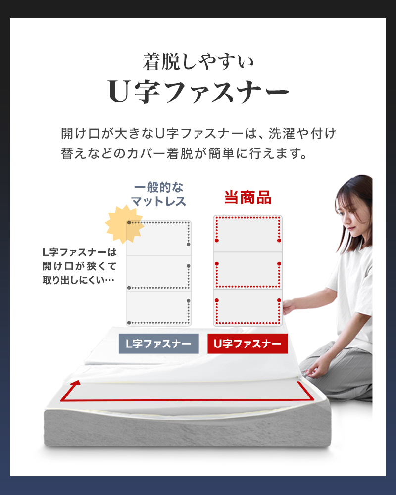 ・着脱が簡単なU字ファスナー仕様