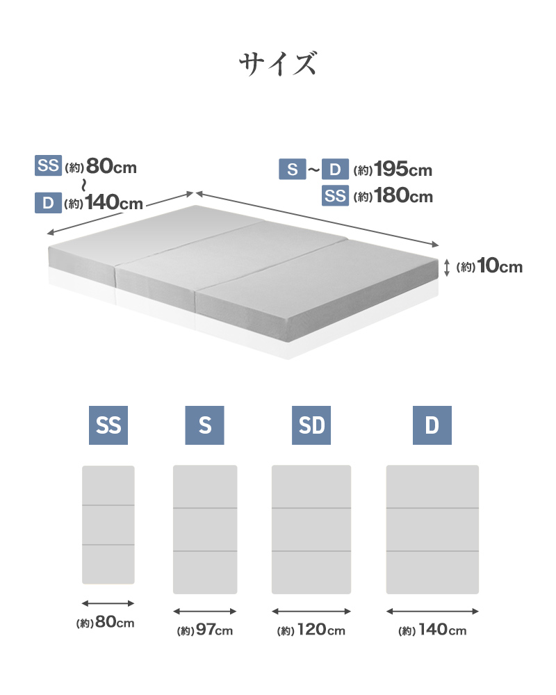 サイズ:(約)180×80×10cm(セミシングルサイズ)