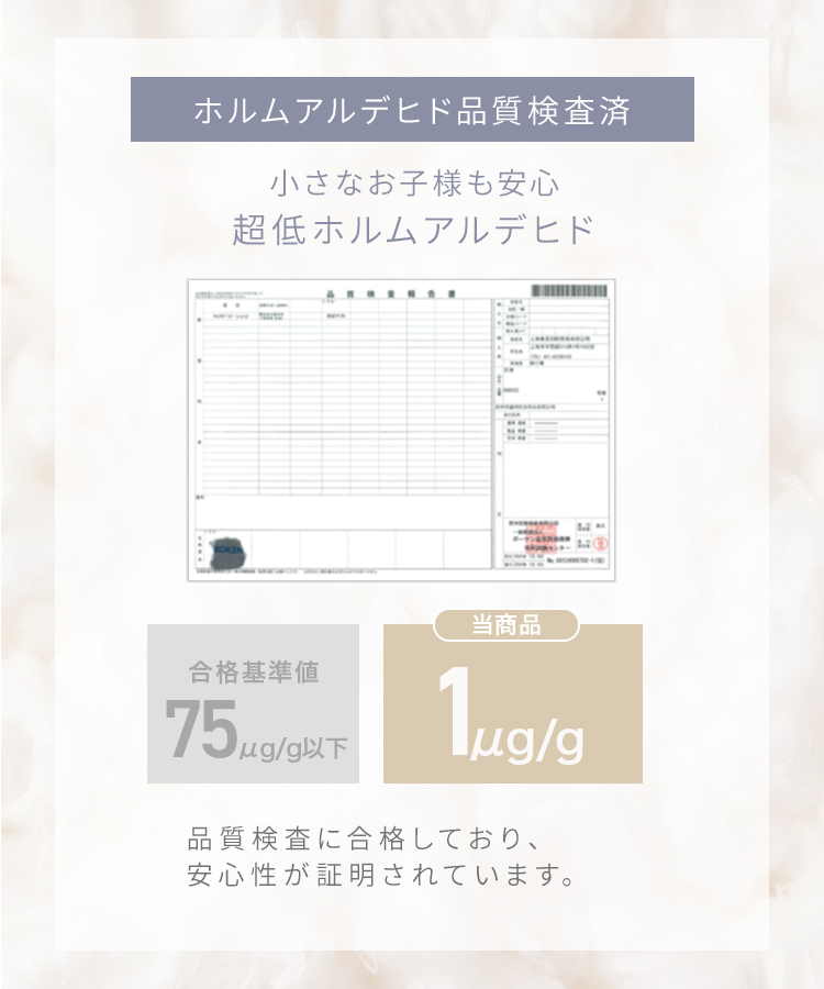 お子様や敏感肌の方も安心して使える低ホルム仕様。