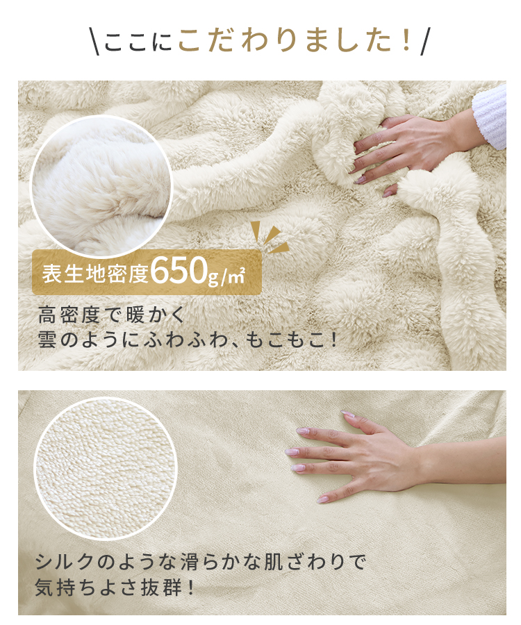 表地は質感が柔らかくふんわりすべすべな「ラビットファー風生地」を、