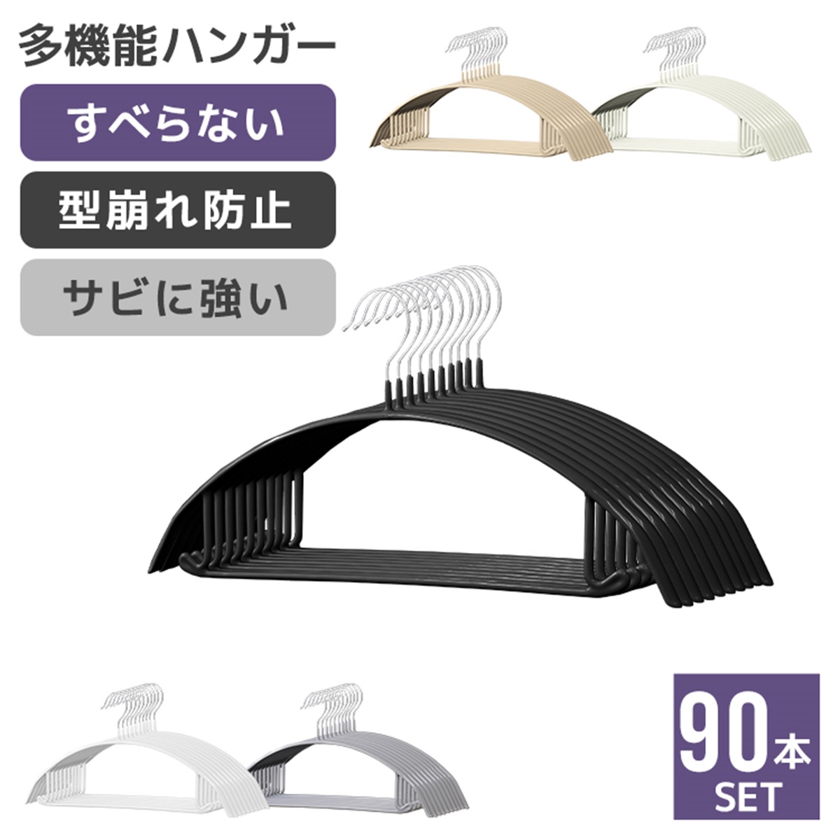 ハンガー 90本セット すべらない 滑らない 多機能ハンガー 42cm 型崩れ防止 跡がつきにくい 丈夫 三日月 固定式 PVC スチール シルエットハンガー 室内物干し