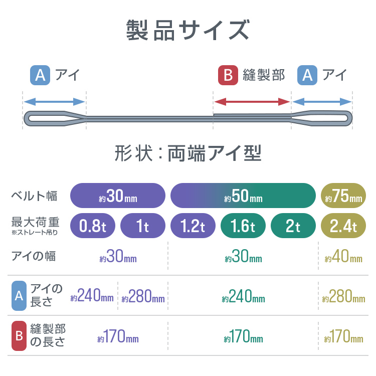 最大使用荷重(能力):ストレート吊1000kg、チョーク吊800kg、バスケット吊2000kg
