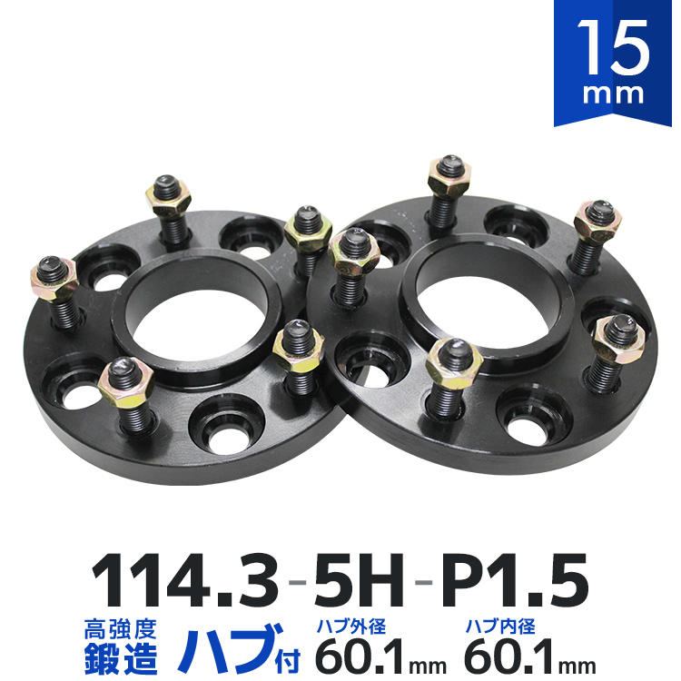 Durax スペーサー ホイールスペーサー ハブ付き 15mm 2枚セット PCD 114.3mm 5H P1.5 ハブ一体型 ワイドトレッドスペーサー ワイトレ ブラック