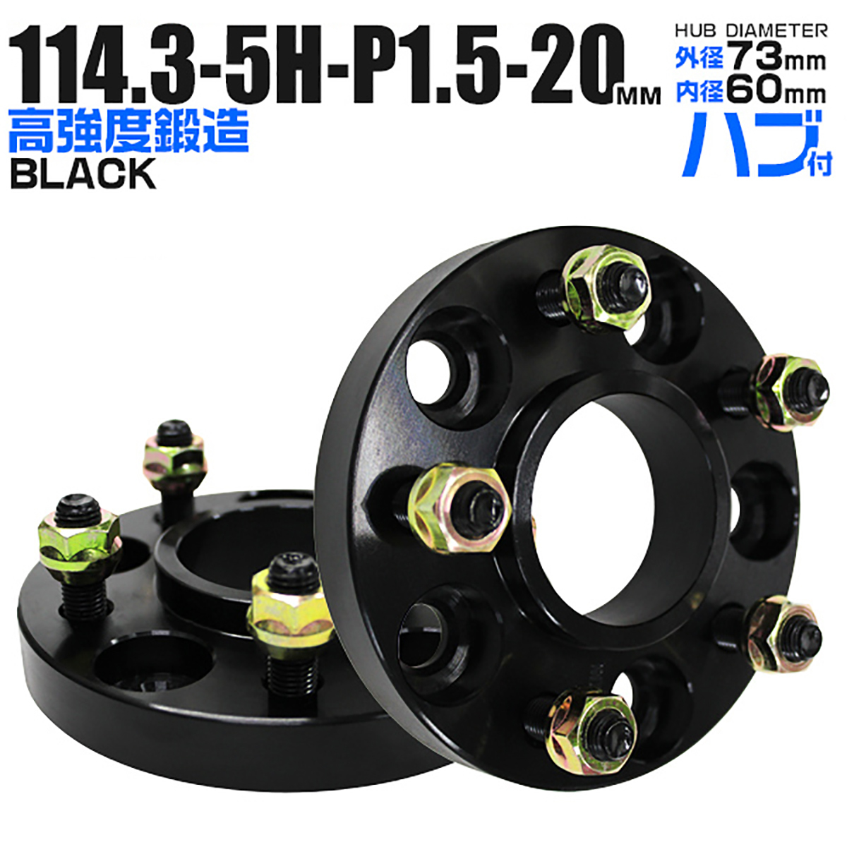 Durax ワイドトレッドスペーサー ワイトレ スペーサー ホイールスペーサー20mm ブラック 黒 114.3-5H-P1.5 ハブセン73mm一体型 5穴 2枚セット WEIMALL