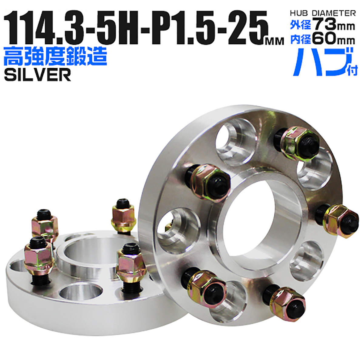Durax ワイドトレッドスペーサー ワイトレ スペーサー 25mm シルバー 銀 114.3-5H-P1.5 73mm ハブ一体型 5穴 トヨタ 2枚セットハブ付き ハブリング WEIMALL