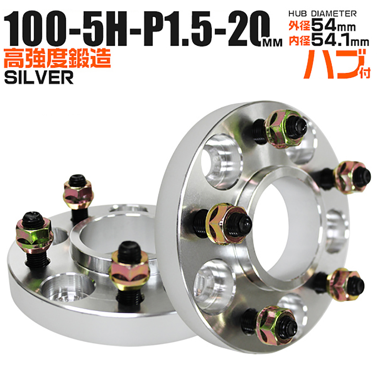 Durax ワイドトレッドスペーサー ワイトレ スペーサー プリウス 20mm シルバー 銀 100-5H-P1.5 54mm一体型 5穴 2枚セットハブ付き ハブリング