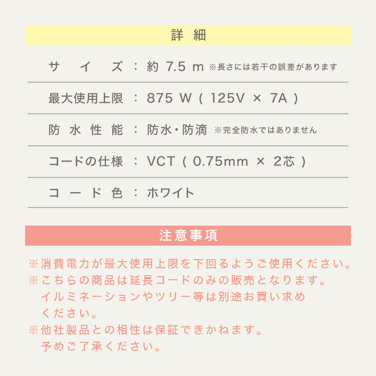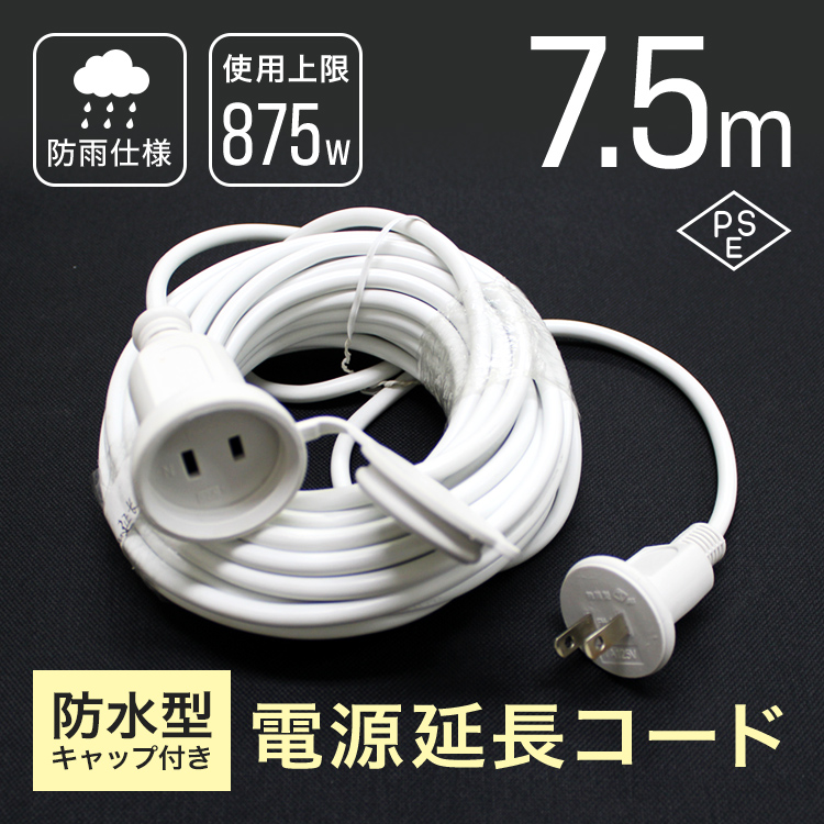 延長コード 7.5m 電源コード 屋外 イルミネーション 防水 防雨 防滴 キャップ付き 1個口 電源延長コード 電飾 除雪機 電動工具 ガーデニング アウトドア WEIMALL