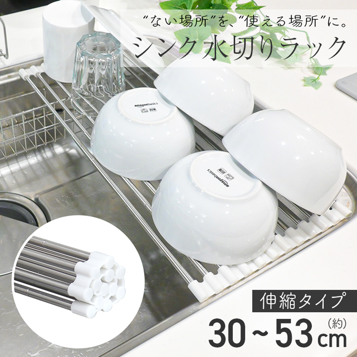 水切りラック 伸縮 シンク上 カット可能 ステンレス 水切りトレー スリム 水切りかご 水切り 折りたたみ 食器乾燥 台所 流し台 シリコン