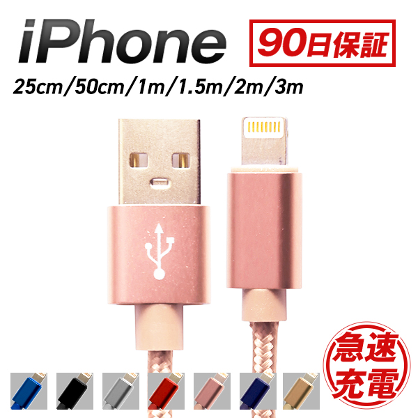 iPhone 充電ケーブル ライトニングケーブル 急速充電 データ通信 強化素材 25cm 50cm 1m 1.5m 2.1A 断線に強い USBケーブル iPod iPad 90日保証 WEIMALL