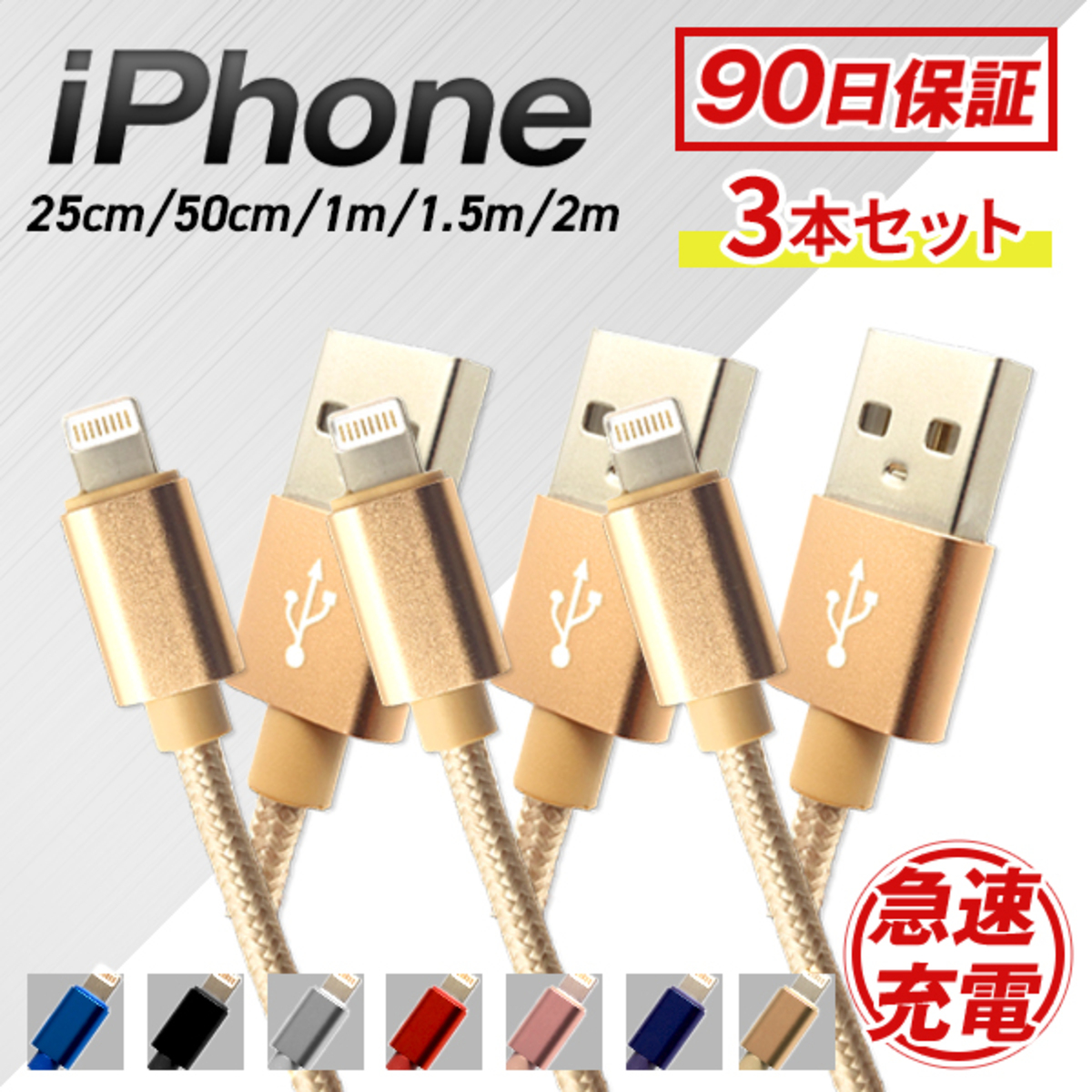 iPhone 充電ケーブル ライトニングケーブル 3本セット データ通信 0.25m 0.5m 1m 1.5m 2m 急速充電 2.1A USBケーブル iPod iPad 90日保証 WEIMALL