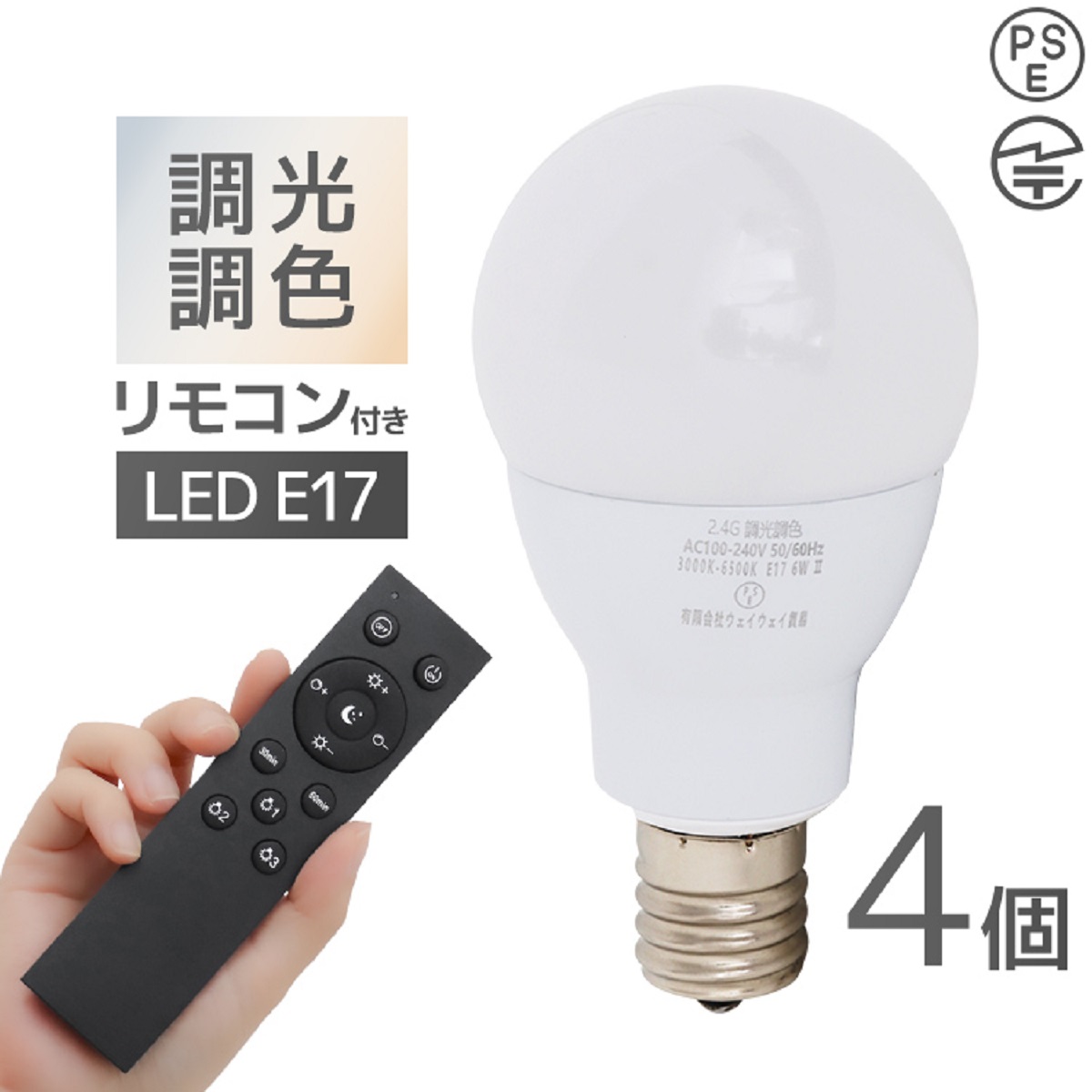 LED電球 調光調色 専用リモコン付 電球4個 LED照明 口金E17 60W相当 広配光 調光器対応 工事不要 照明 電球 LED LEDライト 昼光色 昼白色 電球色