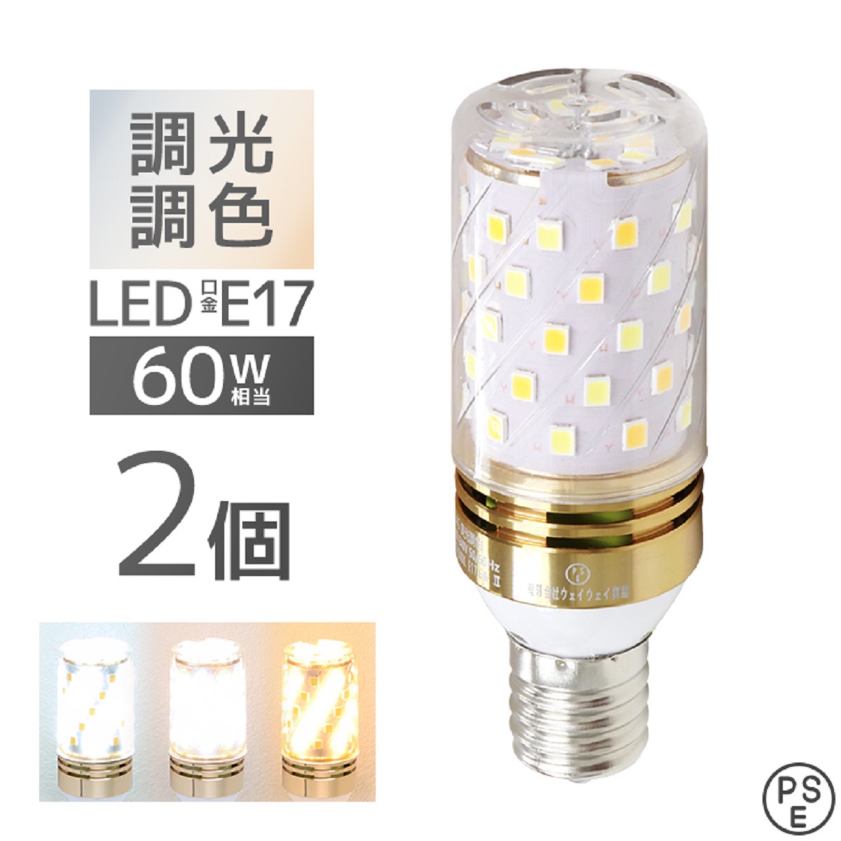 LED電球 2個 調光調色 LED照明 口金E17 60W相当 筒形 調光器対応 工事不要 照明 電球 LED LEDライト 昼光色 昼白色 電球色 60形相当 リモコン対応