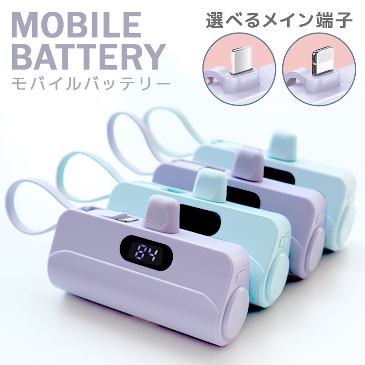 モバイルバッテリー 軽量 iPhone スマホ充電器 5000mAh 小型 ミニ 急速充電 電池残量表示 2台同時充電Android 充電器 スマホ携帯 コンパクト