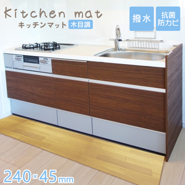 キッチンマット 拭ける 240×45 防水 撥水 滑り止め ビニール 木目調 台所 PVC フローリング 傷防止 床暖房 WEIMALL