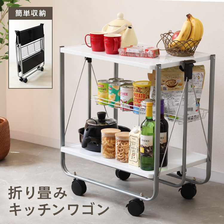 キッチンワゴン 3段 キャスター付き 折りたたみ 収納 サイドテーブル ホワイト スリム