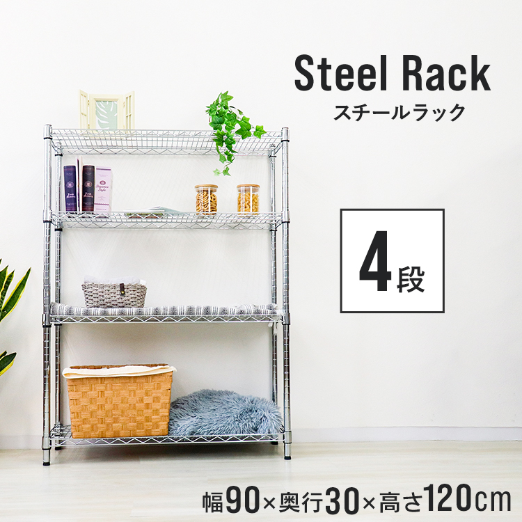 スチールラック メタルラック 幅90 奥行30 高さ120 4段 スチールシェルフ 収納ラック 収納棚 メタル 耐荷重 200kg WEIMALL