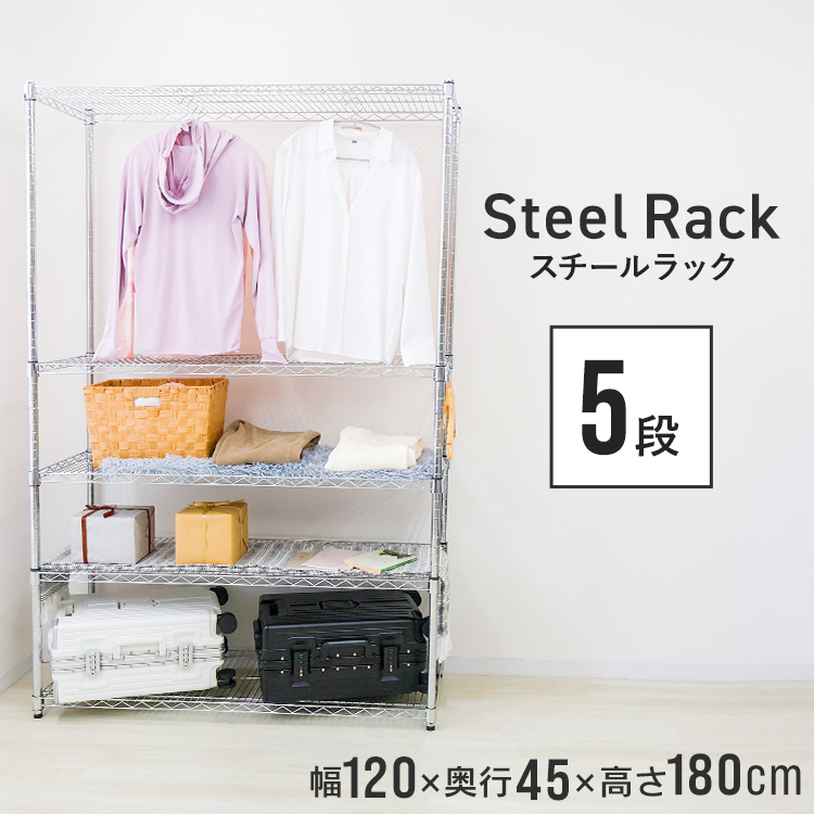 スチールラック メタルラック 幅120 奥行45 高さ180 5段 収納 ラック シェルフ 収納棚 メタル 耐荷重 250kg WEIMALL