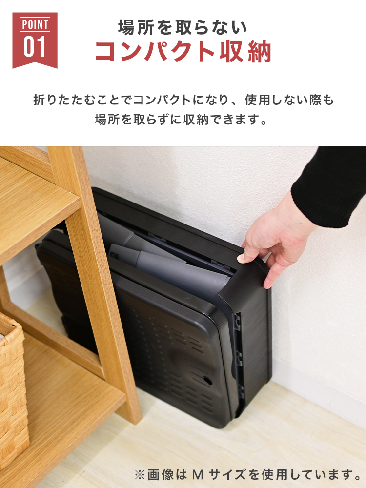 折りたたむことでさらにコンパクトになり、押し入れや車のトランクにもすっきり収納可能。