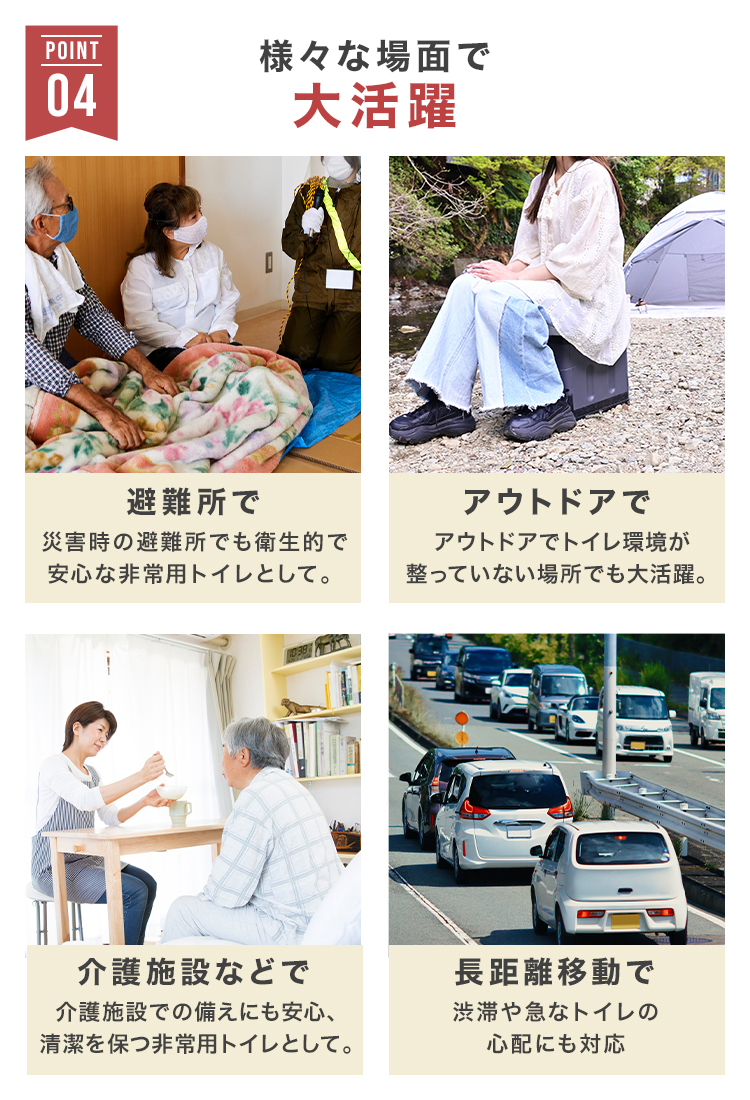 汚れを気にせず、非常時でも快適に使用できます。