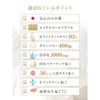 その他仕様:日本製、ダウンパワー400dp以上、パワーアップ加工、オゾンクリーン加工、立体キルト加工、超軽量TTC生地を使用、二重縫製、布団留めループ8箇所付き